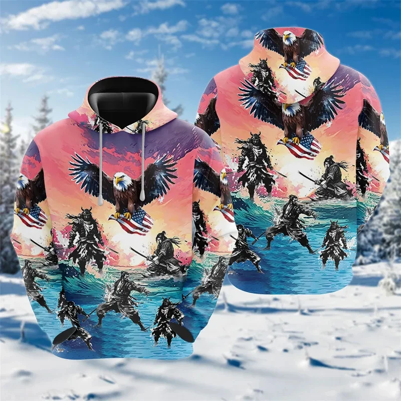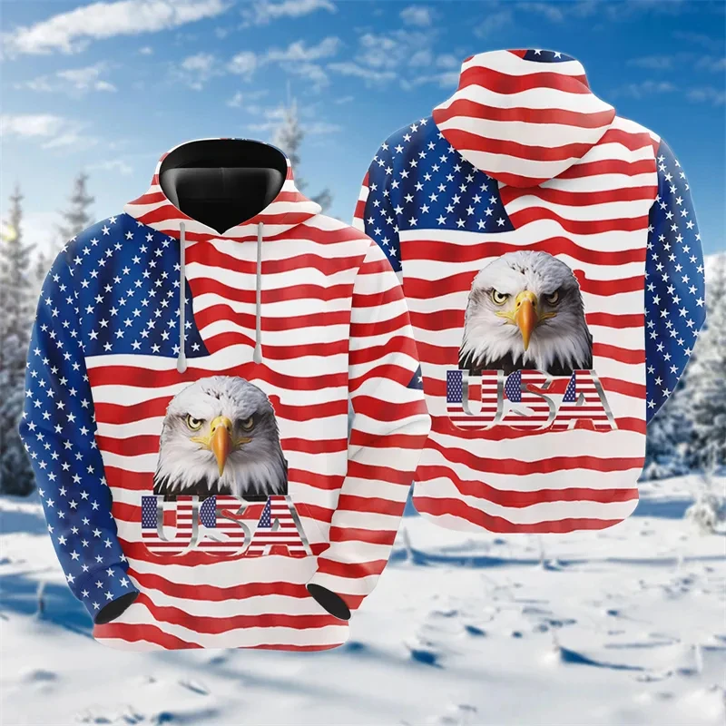 USA Flag Graphic American Eagle 3D Print Hoodies For Men Clothing 2026 Autumn Spring Street Fashion Hooded Sweatshirts Pullovers