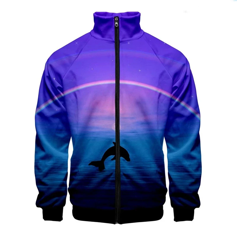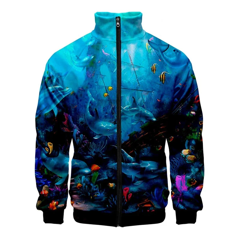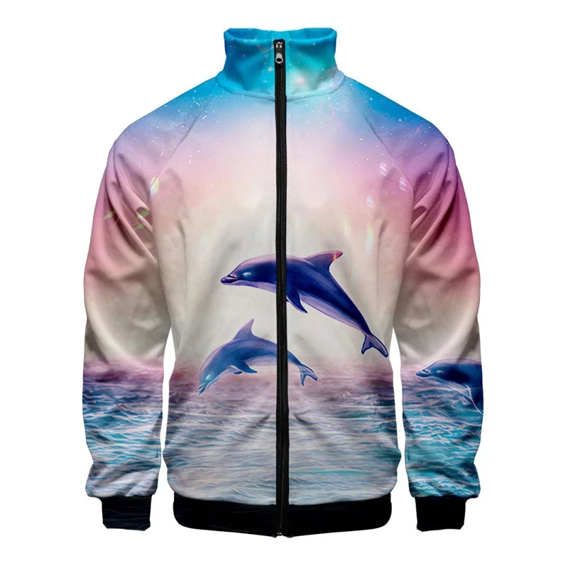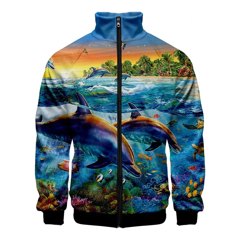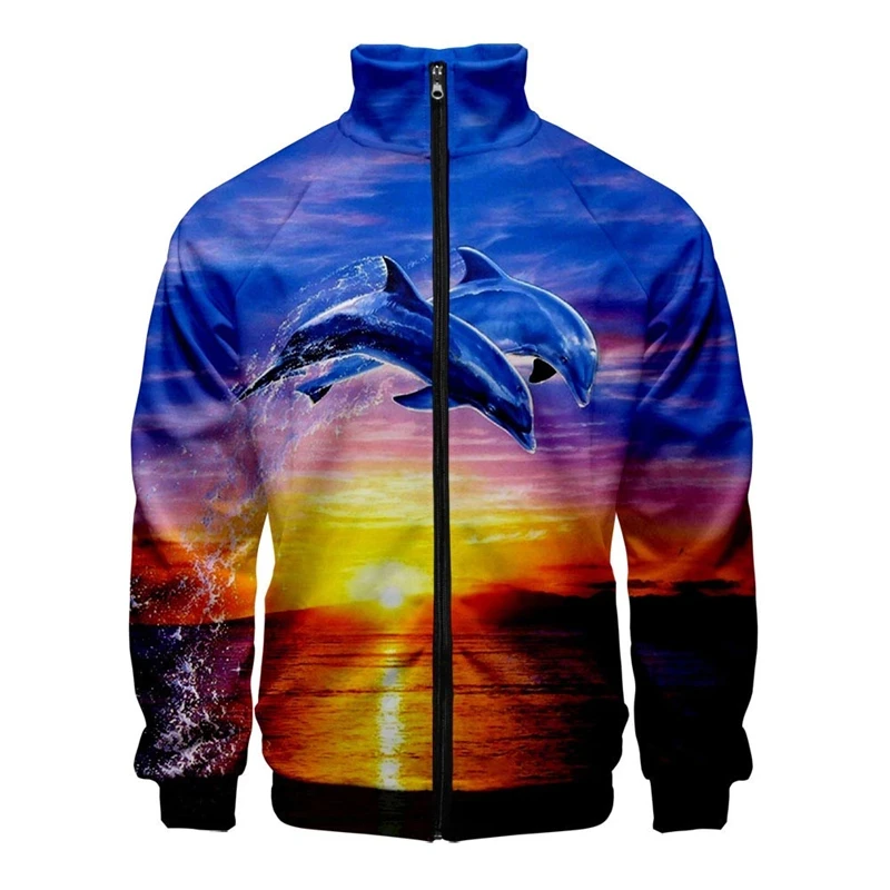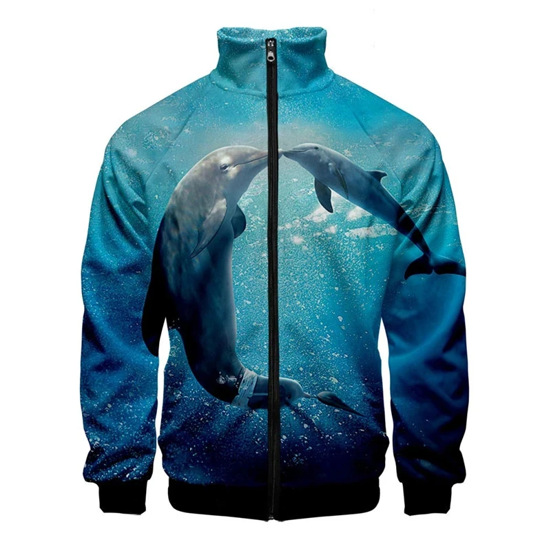 3D Digital Printed Dolphin Graphic Lapel Collar Zipper Jacket For Men Women Long Sleeve Baggy Comfy Clothes Jacket Coat