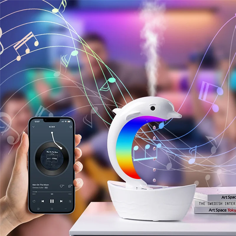 A40Z-Dolphin Water Droplet Humidifier Bluetooth Speaker, Light Tone Humidifier, Colorful Lights
