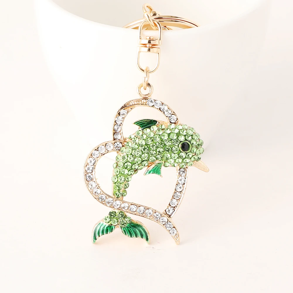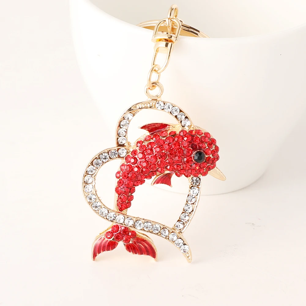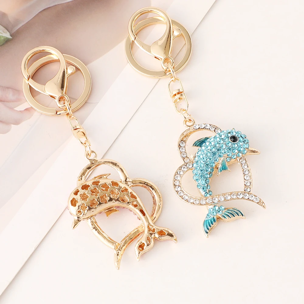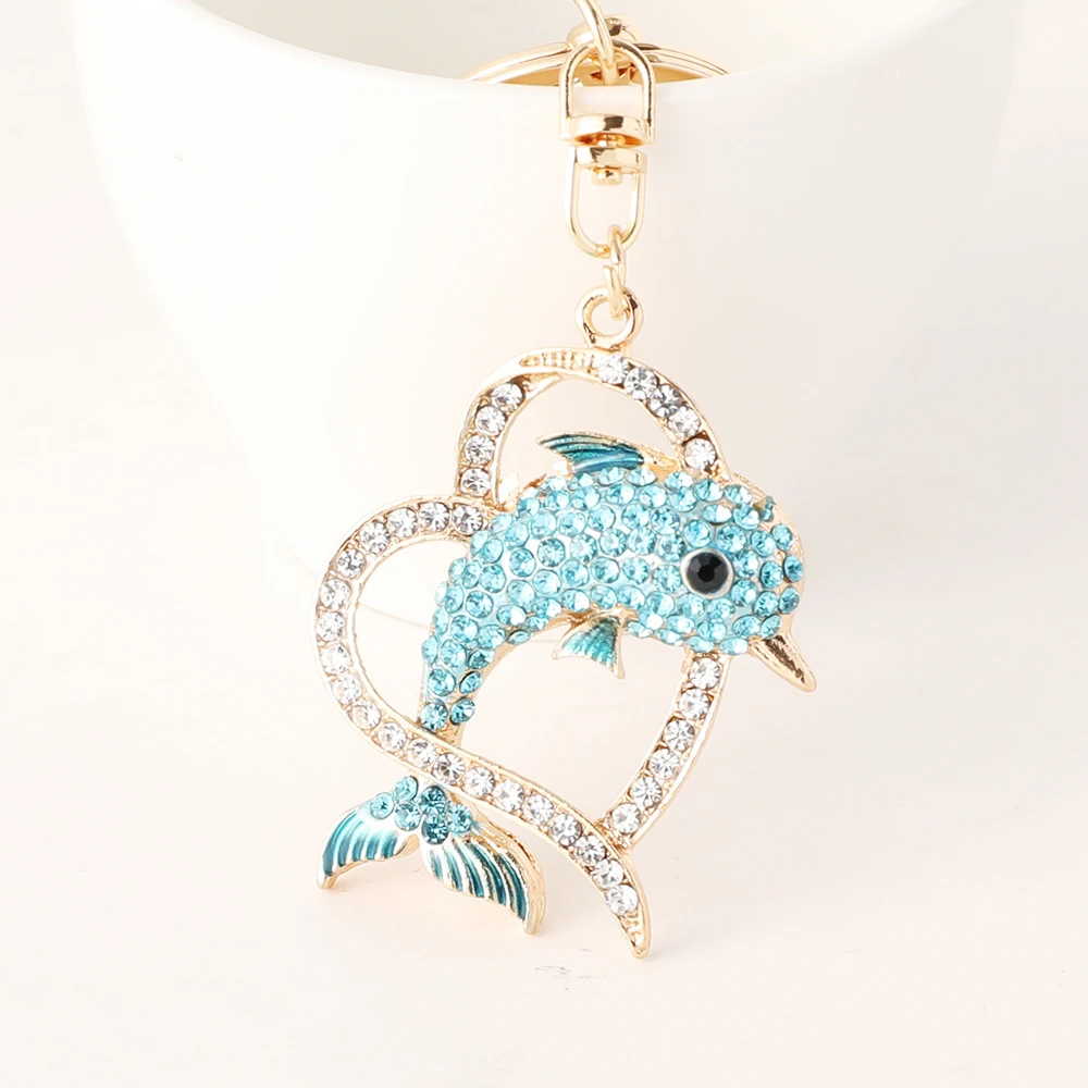 Dolphin Love Key Chain Women's Luxury Bag Pendant Crystal Rhinestone Key Ring Marine Animal Gift for Family Girlfriend