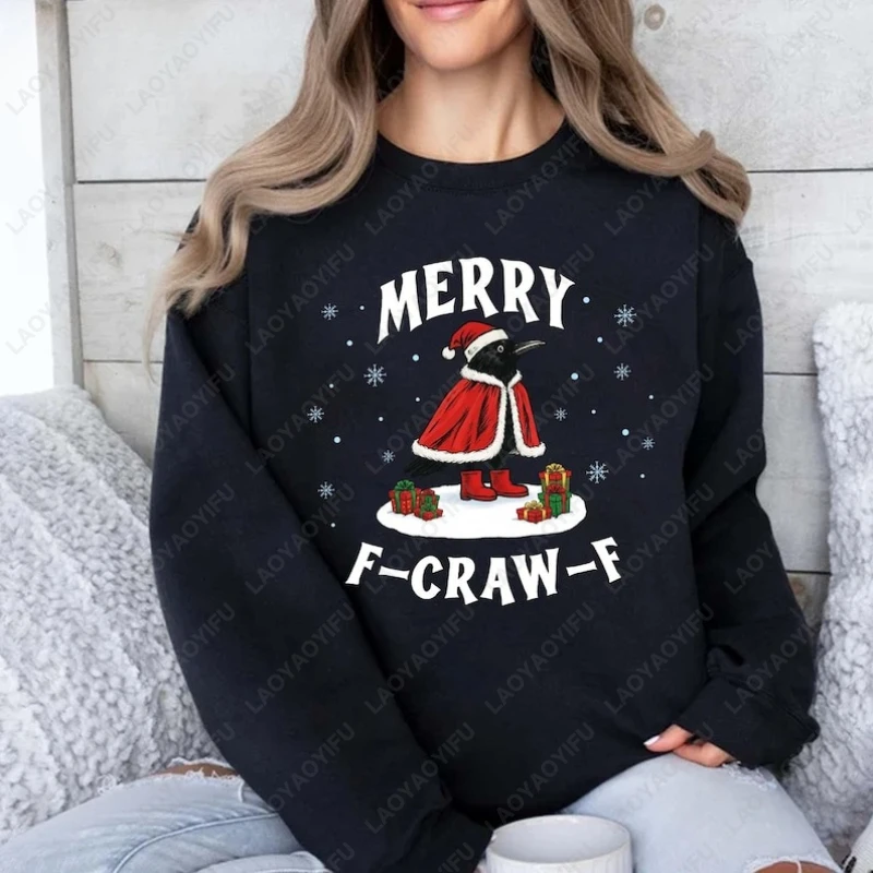 F-Craw-F Crow Christmas Raven Hoodie Vintage Xmas Retro Trend Pullover Men Women Hipster Creative Popular Cool Adult Sweatshirt