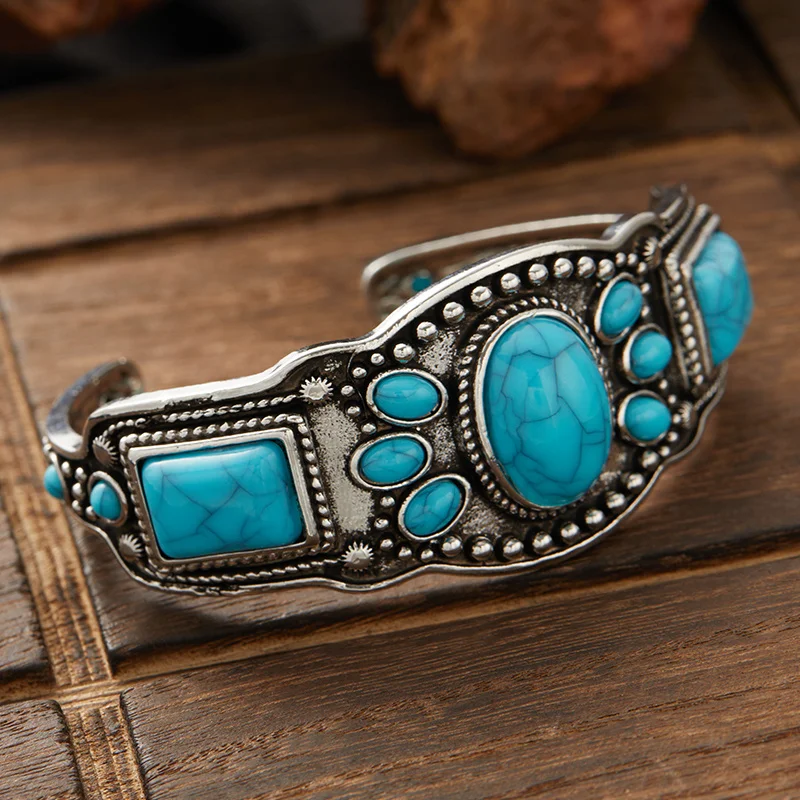 men,Women's Vintage Bohemian Jewelry Cuff Bracelet with Faux Turquoise Opening Adjustable Bracelet Holiday Party Accessories