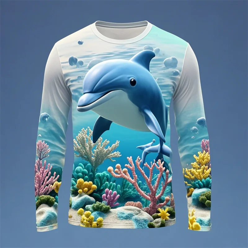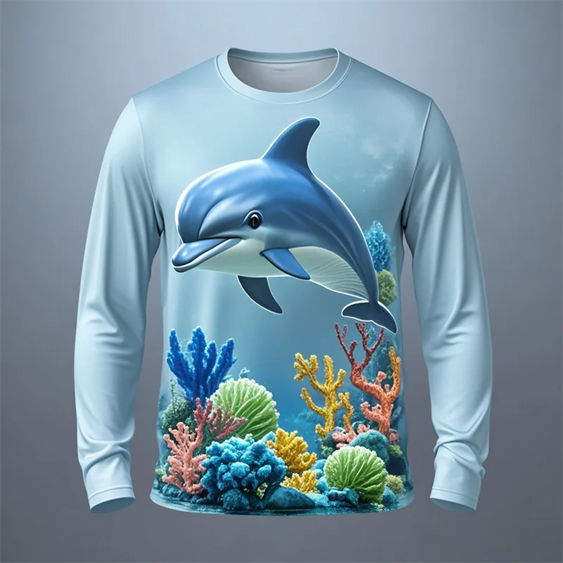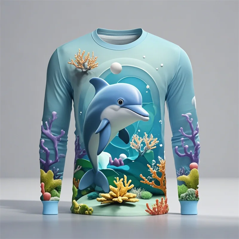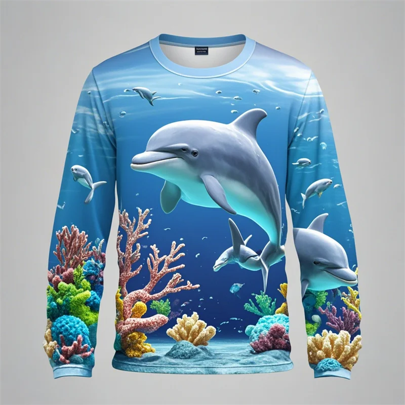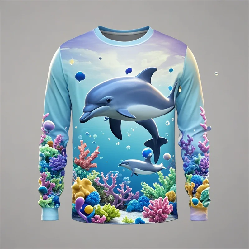 Y2k Men Women 3D Printed Long Sleeve T-shirt Sea Animals Dolphin Hip Hop Long Sleeve Fashion Harajuku T Shirt Tops Kids Top Tees