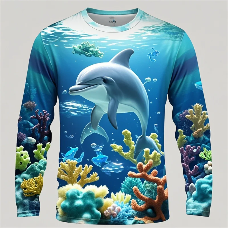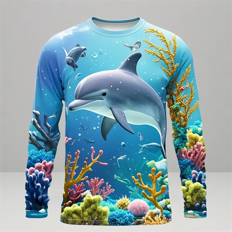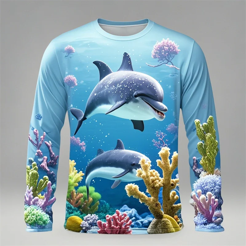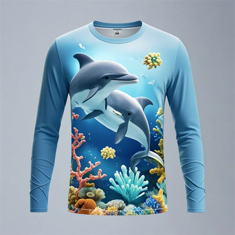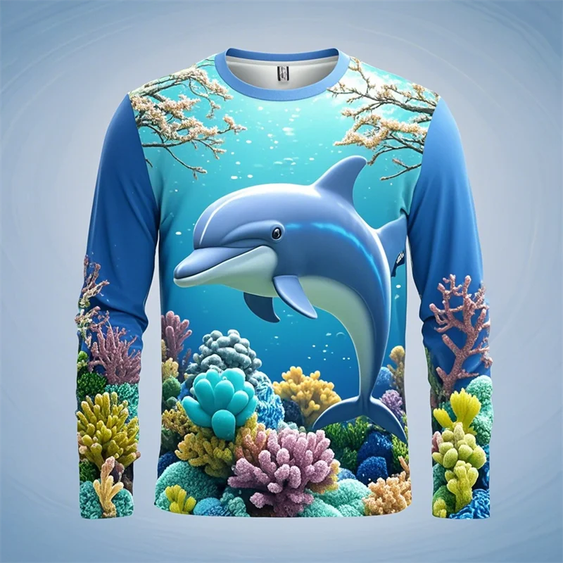 Y2k Men Women 3D Printed Long Sleeve T-shirt Sea Animals Dolphin Hip Hop Long Sleeve Fashion Harajuku T Shirt Tops Kids Top Tees